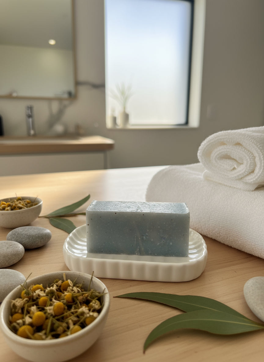 Chamomile Dream is a naturally handmade cold process soap crafted to soothe both skin and spirit. With a luxurious blend of organic oils and botanical powders, this bar offers a silky lather and a tranquil aroma that invites relaxation. Gentle clays and plant-based colorants help detoxify and balance, making it ideal for daily use on face and body.